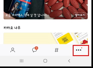 앱스토어나 구글 플레이스토어에 들어가 어플을 설치하지 않고, 이미 설치되어 있는 카카오톡으로 들어가시면 됩니다. 우선 카톡을 열어주고 우측 하단에 보면 있는 점 3개를 눌러 화면과 같은 모습으로 이동을 합니다.