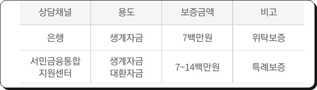 일반보증(은행신청) - 최대 700만원(코로나19 장기화에 따라 2022년 12월 31일까지 한시적으로 최대 1,400만원까지 가능)